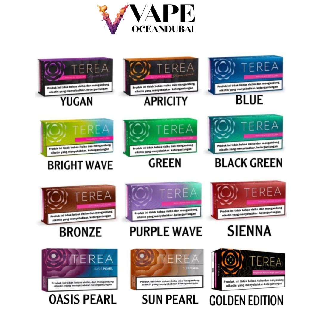- Flavour: TEREA BRONZE , TEREA DIMENSIONS APRICITY , TEREA Purple Wave , TEREA GREEN , TEREA Purple Wave Indonesian , TEREA BLACK GREEN , TEREA BLUE , BRIGHT WAVE INDONESIAN , TEREA SIENNA , TEREA DIMENSIONS YUGEN , Terea Oasis Pearl , Terea Sun Pearl , Terea Gold , Terea Minago , Terea Scarlet